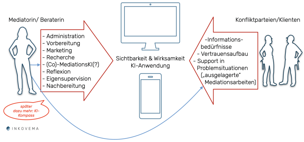 Für Selbständige insgesamt, insbesondere aber für Berater, Coaches und Mediatoren, die mit Lebens-, Konflikt- und Entscheidungsfragen arbeiten, eröffnen sich hier erhebliche Potenziale. Künstliche Intelligenzen können dabei in unterschiedlichen Rollen genutzt werden: