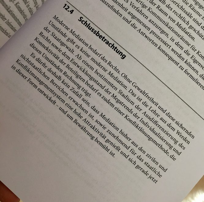 Aber nein, Mediation bietet sich geradezu in Konfliktsituationen an, beansprucht auch gesellschaftlich stetig mehr Aufmerksamkeit (implizite These) und setzt sich im Allgemeinwissen und allgemeinen Handlungsrepertoire durch (explizite Hoffnung).